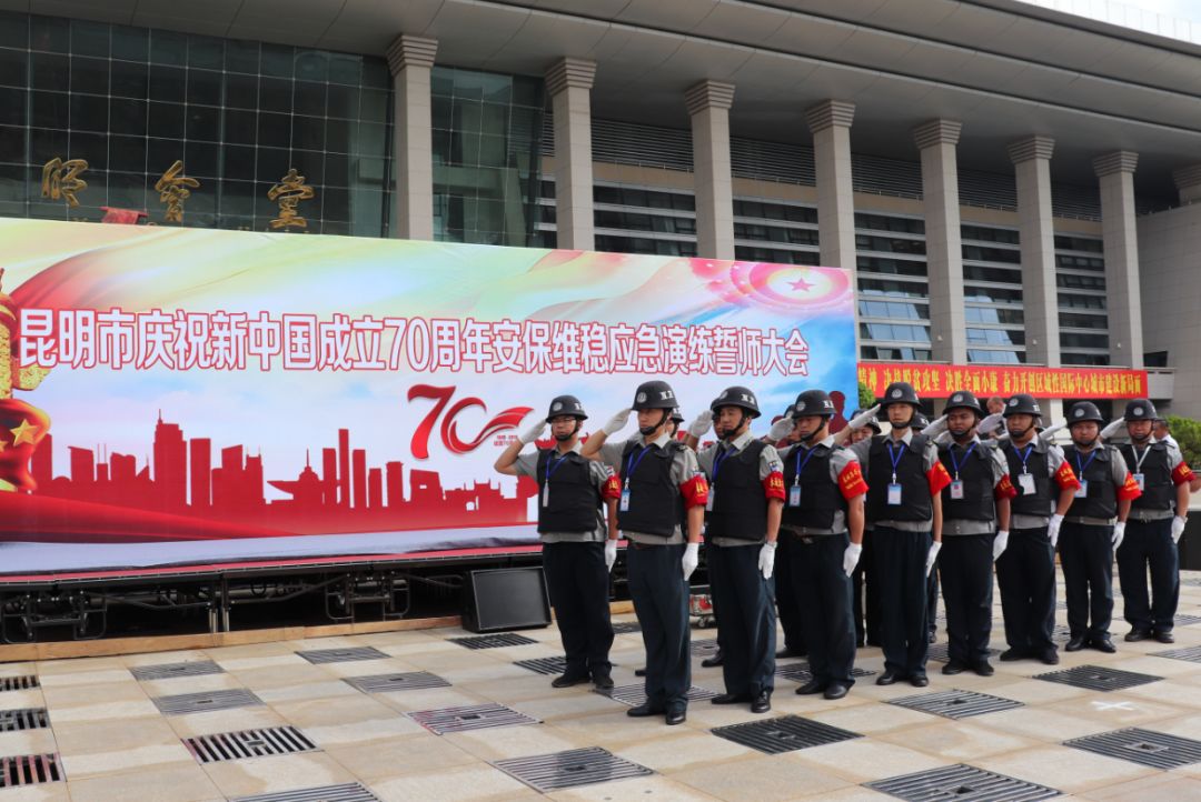 2019年8月28日上午9点,《昆明市庆祝新中国成立70周年安保维稳应急演练誓师大会》在昆明会堂隆重举行,云南互卫保安服务有限公司顺利完成现场安保工作。
