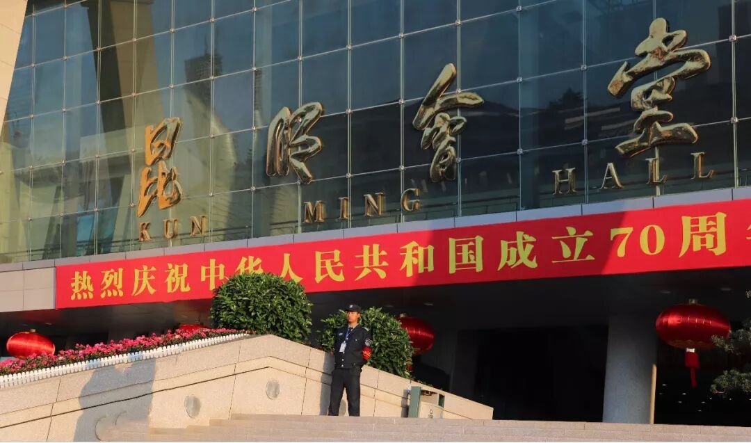 2019年10月1日上午,云南互卫保安服务有限公司配合昆明市公安局、呈贡分局治安大队,圆满完成昆明市庆祝中华人民共和国成立70周年,万人“同升国旗 同唱国歌”活动期间的安全保卫工作。本次活动在昆明市市级行政中心会堂举行。云南互卫保安服务有限公司受相关公安机关邀请,有幸参与此次活动的安全保卫工作,公司把此次任务当做政治任务来完成,通过精心部署,并精心挑选业务能力强,心理素质好和应变能力强的70余名保安员参加此次安全保卫执勤工作。