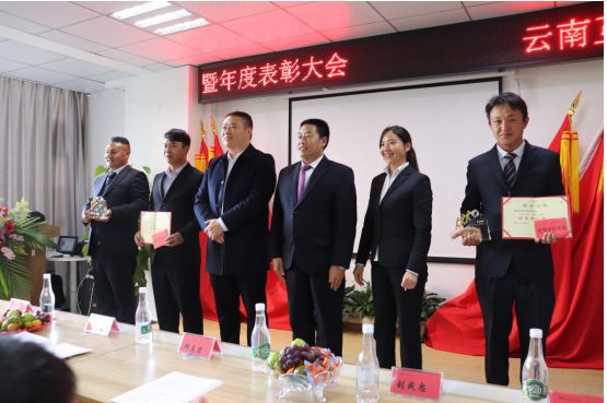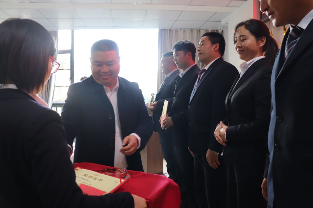 总经理李自成先生为优秀团队--皇冠假日酒店网点、东盟森林网点 颁发荣誉证书和奖杯并合影留念。