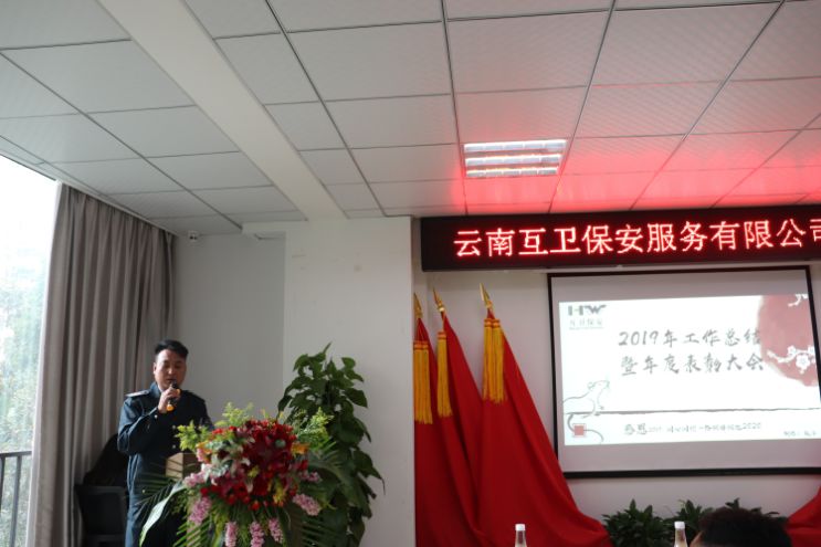 会议最后公司总经理李自成先生总结2019年工作,2019年是公司巩固发展的一年,公司取得的所有成绩是全体员工同心协力、无私奉献、团结拼搏的成果,感谢大家一年来的辛勤付出和努力。同时李总对公司2020年部署工作目标和任务,希望所有公司的同仁能够卸下历史的成绩和压力,携手共进,在新的一年不断跨越,再创新的辉煌。“云南互卫保安服务有限公司2019年工作总结暨年度表彰大会”在大家热情的掌声中圆满落幕。